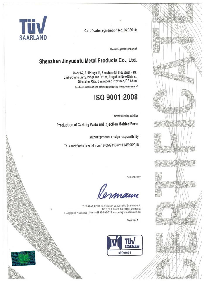 深圳市金源福五金制品有限公司成立于2003年。公司擁有8000多平方米生產(chǎn)廠地、開發(fā)與管理精英人才、技術(shù)專業(yè)、設(shè)備精良、交通便利、服務(wù)周全、具體設(shè)計、開發(fā)、制模、出樣、生產(chǎn)到成品出貨一體化模式生產(chǎn)廠家。已通過ISO9001:2008ISO1440/TS16949:2009國際質(zhì)量體系認證。專業(yè)生產(chǎn)鋅合金壓鑄、鋁合金壓鑄產(chǎn)品、汽車配件、汽車后視鏡支架、車載導航散熱器、LED散熱器、LED燈罩、數(shù)碼電子五金結(jié)構(gòu)件、家具五金裝飾件、標牌(LOGO)等五金壓鑄產(chǎn)品。
